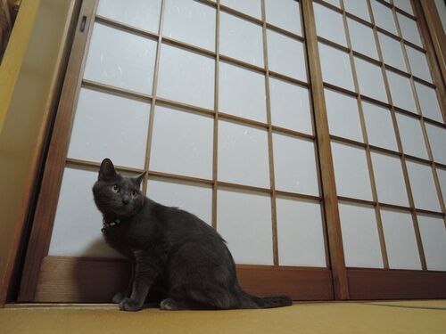 We changed the paper on our sliding doors last weekend by our ourselves. It was the first time in my life to do this, but everything went well. Don't tear up the paper on the sliding doors, Kuro and Rossy!!
